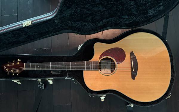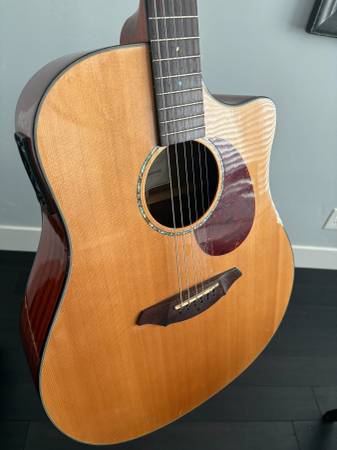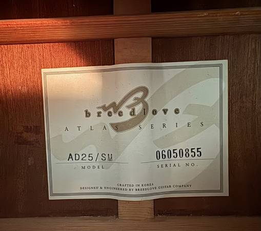 Original owner, bought new in 2006. This Breedlove is a solid Sitka spruce top and solid mahogany-back jumbo/dreadnaught with a mellow, deep tone and great pickups. I appreciate how the Fishman Classic IV allows individual frequency band scooping. I still get compliments with how this sounds through a PA even compared to Martin/Taylors 3x more expensive!
