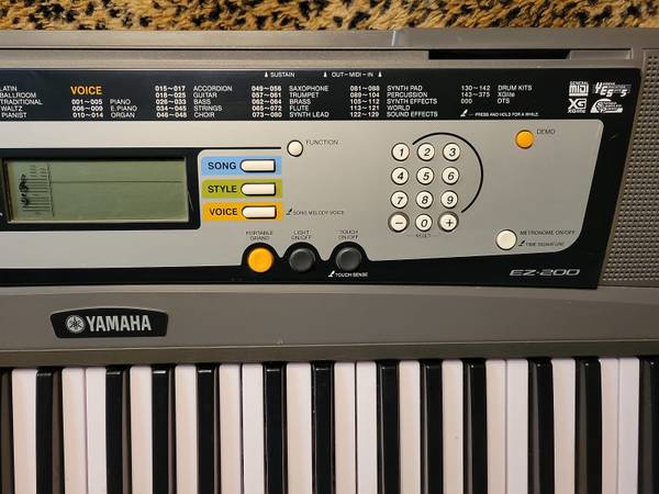 Teaching features of the EZ-200 include the "Lesson" feature, which lets you learn the left and right-hand parts of 100 pre-programmed songs by following the key lights. A fingering guide teaches proper fingering technique and a chord dictionary offers specific chords. A virtual teacher evaluates your practice sessions and rates your performance over four levels.