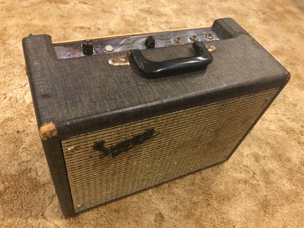 Great little amp w/original Jensen 8” speaker. Recently serviced with a 3-prong grounded cord added. There’s a jack on the chassis that the speaker plugs into - makes it easy to switch speakers for different sounds. $600 cash or trade for USA Fender Telecaster or Stratocaster & thanks for looking!