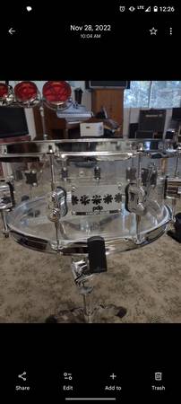 Pacific drum products Chad Smith 14 inch acrylic snare. 14" x 6", in almost brand new shape. Does not include the stand. 200.00 cash only, no bs. Pick up in placerville only.