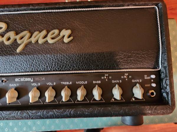 I bought this recently on an impulse but realize I have way too many amps and need to let some go. This small but mighty beast has all of the sonic characteristics of its big brother, the Ecstasy 101B, but in a much smaller package and general footprint. The amp itself is in Mint condition and has a tolex front panel rather than the cloth to give it more of a vintage look. It sounds incredible as one would expect from anything Bogner.