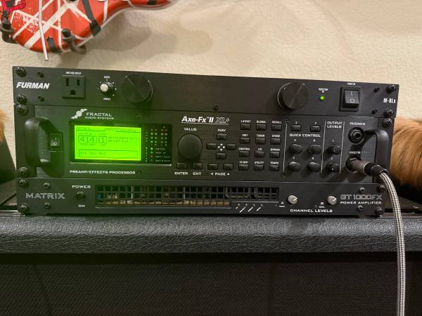 This is a complete Fractal Axe FX Rig. Comes with a mint AXE FX 2 XL+ with a ton of extra presets including the entire Metallica Bay Area Metal Giants Pack Volumes 1 and 2 with rhythm and lead presets for all the killer Metallica albums. Many other purchased presets from Moke, Leon Todd, and several others as well. This also includes a mint MFC-101 Mark 3 foot controller. Also comes with the connector cable.