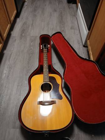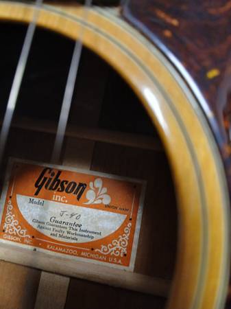 1975 Gibson J-40 Sounds beautiful and in excellent physical condition. Needs new strings and you'll probably want to lower the action, but otherwise its perfect. Great for bluegrass and folk....