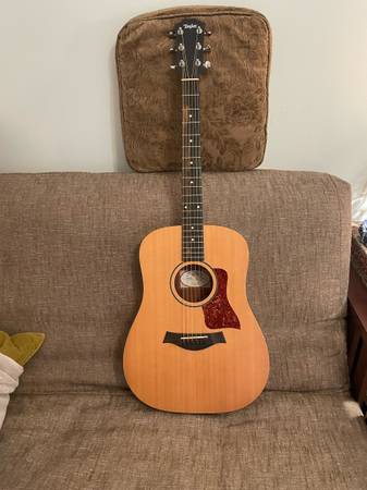 This is an excellent condition Taylor Big Baby acoustic guitar. No bag. Looking to sell or trade for a fender Stratocaster or a Gretsch semi hollow as shown in the last pic (believe it is the g2655t model in walnut or imperial stain)