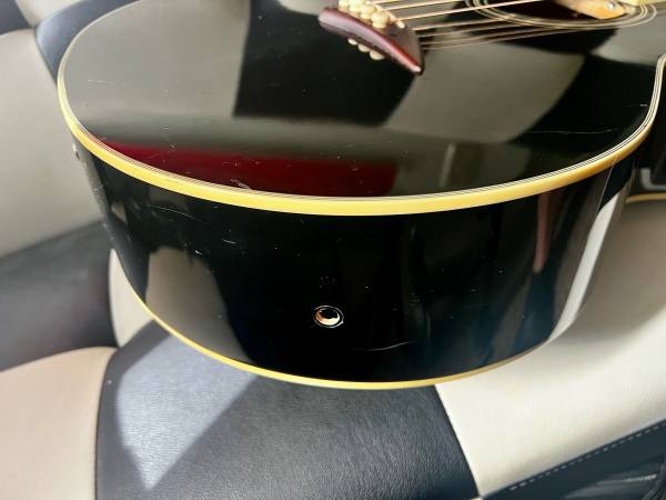 This Dean acoustic bass is in great overall condition and was just restrung and cleaned from top to bottom. The input jack is missing, so it’s currently functioning as an acoustic-only bass.