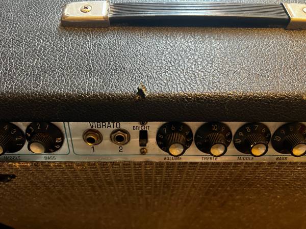 The amp is in excellent working order and sounds fantastic — shimmering Fender cleans, massive volume on tap, and that unmistakable sparkle that only JBLs deliver. Cosmetics are very good for its age with normal wear for a late-’70s Twin. All controls function properly, reverb and tremolo are lush, and it’s ready for stage or studio use.