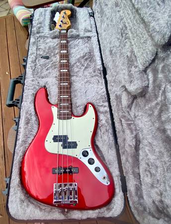 Rare 2013 USA-made Fender Vintage Hot Rod ’70s Jazz Bass in Candy Apple Red nitro finish. Only made 2013–2014. Combines the best of both worlds: Precision Bass punch + Jazz Bass snap.