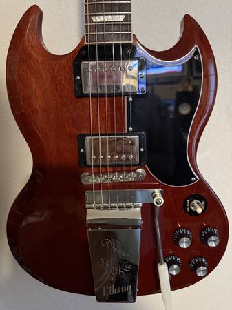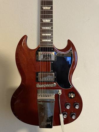 Gibson SG Standard '61 Maestro Vibrola Vintage Cherry 2021, in excellent condition. Get that AC/DC look and rock hard with this Gibson SG. Comes with original Gibson case. Hardly played, never gig, kept at home. If the ad is up, it is still available.