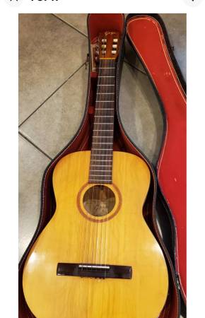 Looked over by luthier and plays well. Has natural wear on lacquer and original case. Typical lacquer crazing seen on guitarscof this Vintage.