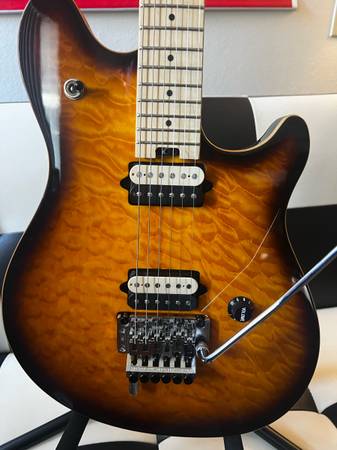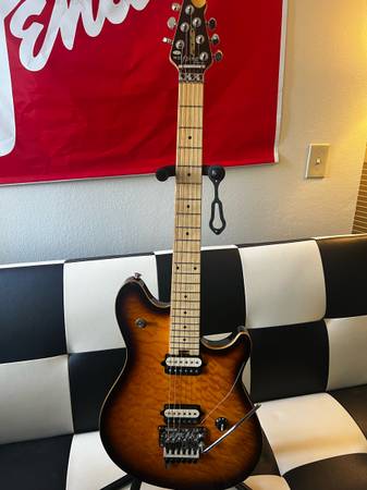 Here’s another early-2000s Peavey EVH Wolfgang Special EXP, made in Korea and finished in classic Tobacco Burst. This model delivers that unmistakable Wolfgang tone and feel—fast neck, hot pickups, and rock-solid tuning stability thanks to the Floyd Rose tremolo and EVH D-Tuna system.