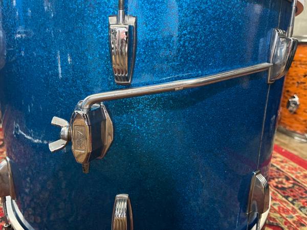 Here we have a 1960's Ludwig drum set in Blue Sparkle. This is a player-grade kit that was pieced together over the years, but it sounds and looks KILLER. Sizes are highly desirable!