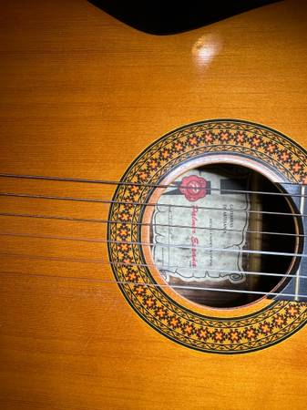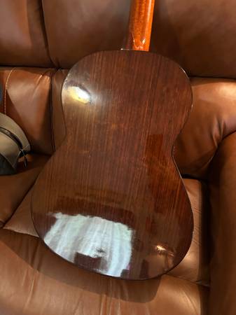 Palmer classical guitar made in Spain. Very nice condition. Perfect for beginning players. Looks and sounds good. Light scuffs with no major defects. Could use some new strings.