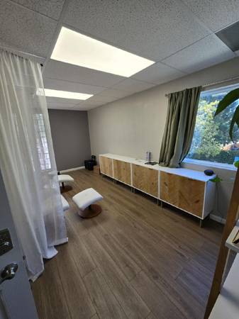 Room 103 is a VERY PRIVATE Room sharing only 1 wall. It has 2 walls of windows. Very private next to exit. $799/month, 30 day terms, deposit equal to rent. Near a sink right outside of the room. Hard Flooring Available Now
