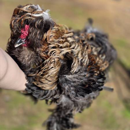 Silkie Chickens - all birds for 65 Adults (2 Year Old) White/Red Pyle Silkie Laying Hen - 25 (1 Year Old) Black/Red Woolie Frizzle Rooster - 20 (6 months old) DNA Tested Pullets (females) - 20 each...