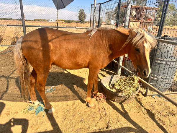 Sorrel pony. 3 years old. Stud. Friendly will let you get close to him and pet him. He is rideable but still needs some training. Message me for more information.