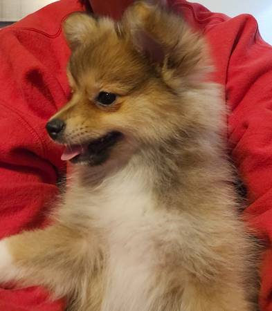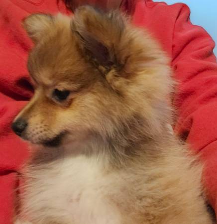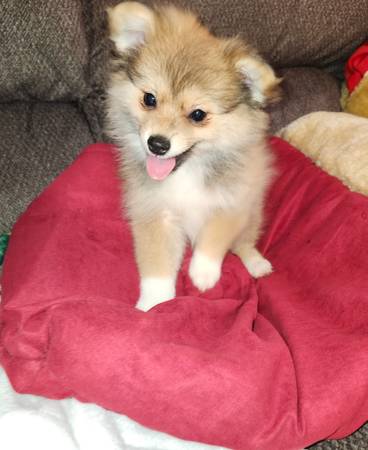 Gorgeous 9 week female pomeranian puppy. Loves to play and snuggles Crate trained. Potty pad trained. Two rounds of shots and dewormed Loves to be brushed. Fantastic personality.