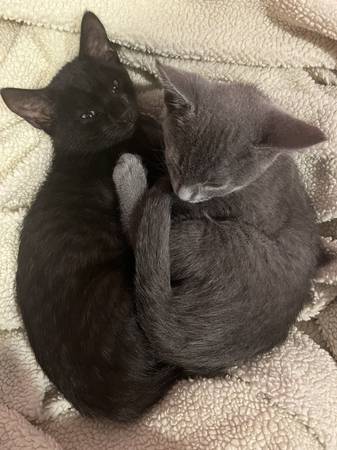 Two adorable kittens looking for loving homes! 🐈⬛ 1 black male 🐈⬛ 1 grey male Small adoption fee applies. Message for details!