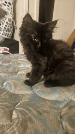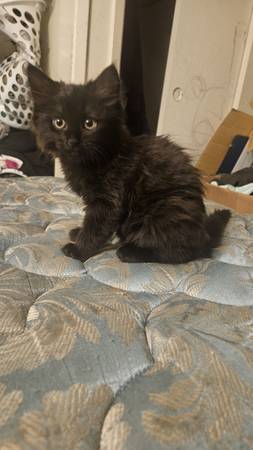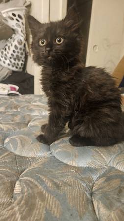 Female black kitten for rehoming. 15. Good with kids, super sweet and fluffy, we just have too many cats to keep her. Five more from new litter not ready yet, but email for waitlist. Should be ready...