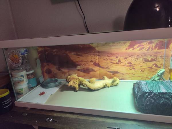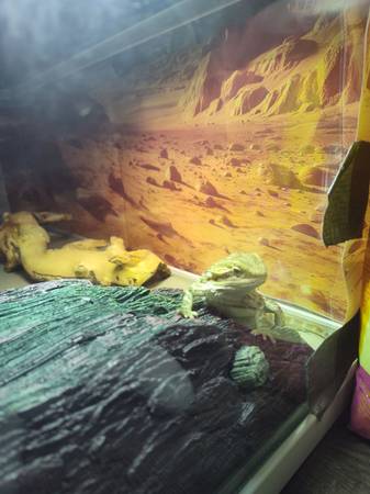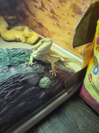 I am selling my about 6 month old bearded dragon I got her from someone in September. I have to because my cat keep trying to get into the cage and I don't want her to be harmed. She comes with a 20gallon tank and everything inside. Rehoming fee apples. $200