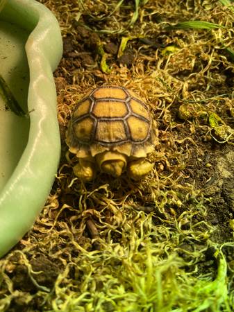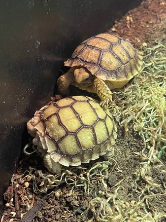 2 sulcata hatchlings left. Tortoise by itself 100 dollars. The whole setup is 225$ with both tortoises. Both tortoises are eating really well, and are ready to go to their new home.These guys turn into backyard companions and get pretty big. Parents are the first picture. Take home today.Contact Jon at show contact info