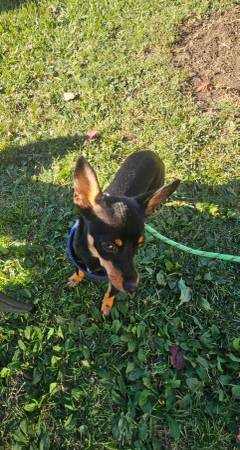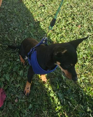Hello I have a mini pincher his 4 months He is very friendly he loves going on walks He gets along with other pets also people Rehoming fee