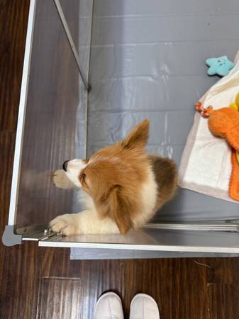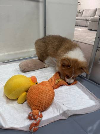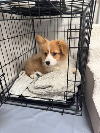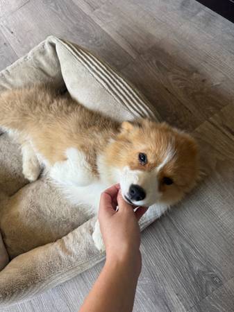 We have a sweet little fluffy (longhair) pembroke welsh corgi puppy available. 3 months old Male Comes from AKC parents, going to a pet home only Potty trained, crate trained. Rehoming fee Pickup only