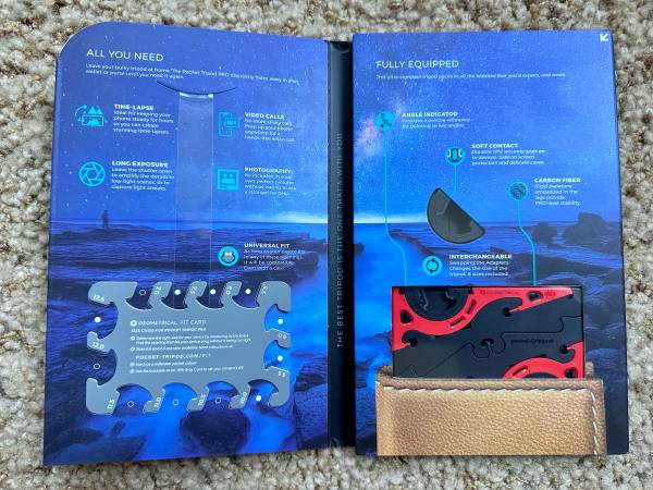 Foldable credit card sized mobile telephone tripod (for both iPhone & Android devices) that eliminates need for a selfie stick