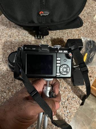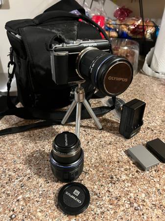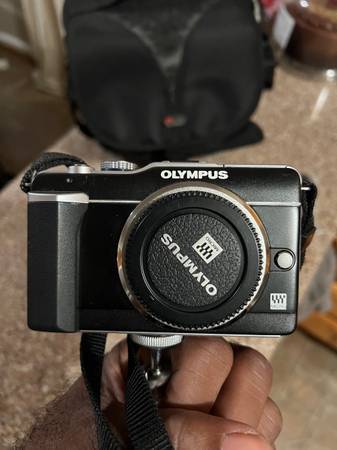 Olympus PEN E-PL1 digital camera. This camera is a 12.3-megapixel interchangeable lens digital camera that uses the Micro Four Thirds format. Shoots video as well.