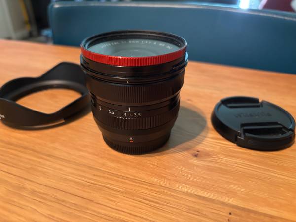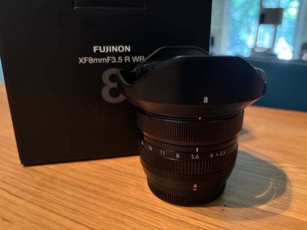 This is an immaculate Fuji 8mm f/3.5 super wide angle lens. Includes the lens, front and rear caps, hood, and a Moment 5% cinebloom filter that has been on it since day one.