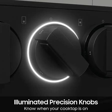 Illuminated Precision Knobs: This range's knobs will light up when in use to let you know that your cooktop is on; Also, the knobs stay locked when cooktop is not in use with integrated buttons that must be pinched in before the knobs can turned(See user manual for instructions)