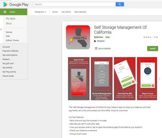 Our Phone APP makes it easy to rent new units, make payments, and open the gate without getting out of your car!! (Self Storage Management of California) https://storagecali.app.link/kNMJKRvFfU