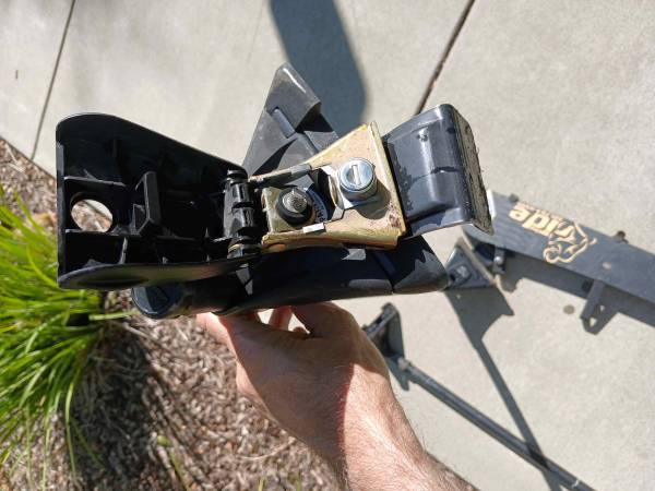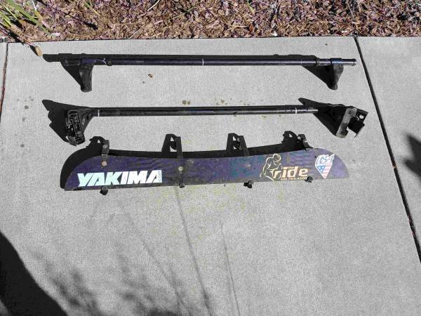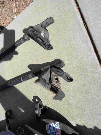 I'm also selling the 44 inch fairing wind deflector for round Yakima crossbars for $10 (I'll be posting separately for $15). Needs a screw and washer to secure support to deflector and best to replace them all because its an different kind of plastic that degrades over time (see 3rd photo).