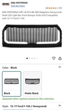 * Selling a "BRAND NEW" DNA MOTORING GRF-LB-014-BK ABS Badgeless Honeycomb Mesh LED Light Bar Front Bumper Grille Grill Compatible with 15-17 Ford F-150.