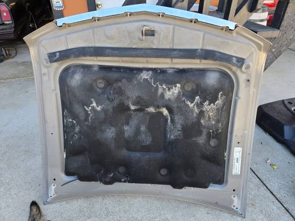 2003-07 Cadillac CTS Hood for $180. It has some dog scratches, but they may buff out. Champaign color.
