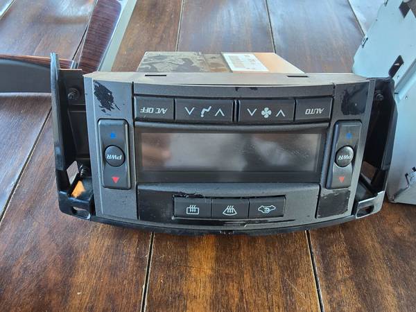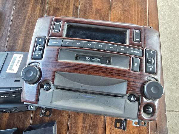 2003-2007 Cadillac CTS CD Radio Dash Assembly With Vents & AC Climate Control for $100/all. Two screws on the radio trim are broken. One tab is broken on the plate cover trim. Also climate control and ashtray mounting trim is broken. Everything worked well and from my 120k mile 2003 CTS. It should fit the given years, but please double check.