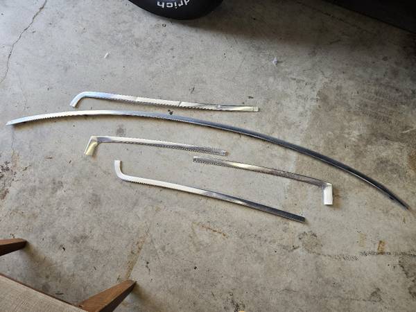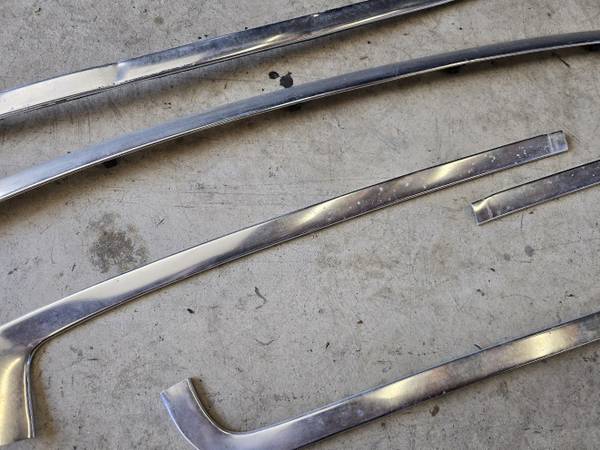 1980-1996 Ford F150 Bronco Windshield Trim Outside Molding for $40. One is bent in two places. The others have normal blemishes and need a polish. From a 1990 F-150.