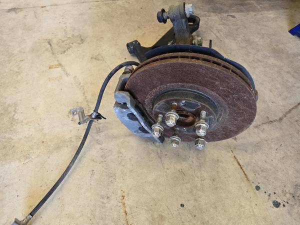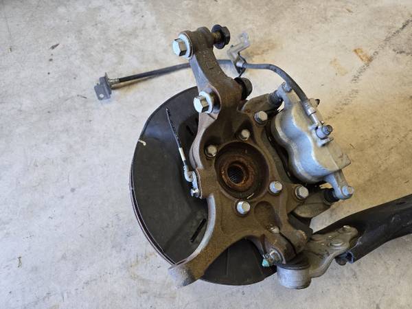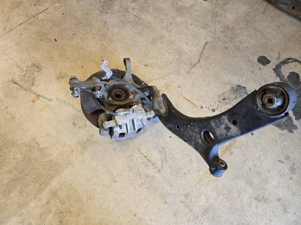 2015-2018 Kia Sedona 3.3L Complete Passenger Right Side Brake Control Arm Assembly for $100. Everything has normal wear and tear. Pads are low. Comes with everything pictured: caliper, rotor, spindle, control arm. Bushing needs to be replaced. Ball joint seems ok.