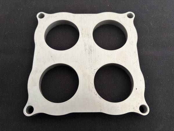 Here’s a nice 1/2 inch thick aluminum Carb. plate. It’s in very nice used condition. This one has the 2 inch bore and will fit most Holley 4500 carbs. Save some money here. ——$45
