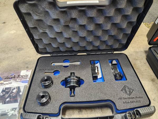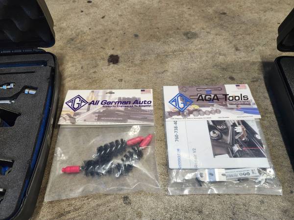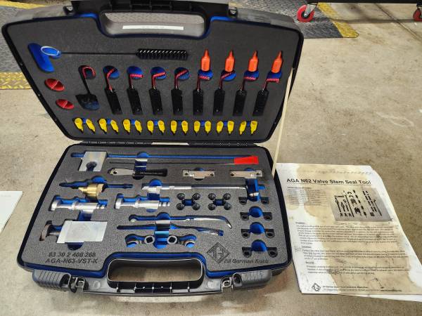 Selling AGA (All German Auto) BMW N63na/ N62 valve stem seal tool kits. Also comes with BMW Cam timing kit, BMW direct injector kit, extra brushes, and Mercedes Benz Door Lever repair kit. All used all complete kits except one of the wrenches is missing from the N63 kit, but there is a duplicate in the other kit. Everything is there. All instructions are either included or on their website. Everything is oiled and in great shape. Here are the descriptions and/or part numbers you can look up on their website.