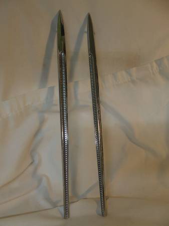 This is a pair of NOS 1961 Ford T-Bird Exterior Quarter Panel Molding Trim in original FOMOCO box. Part # C1SB-63290A76-C. Part # is stamped on back of trim pieces. 3 connectors included. Metal. Never installed - new old stock. $100 for the pair. They are in Penryn. Call show contact info
