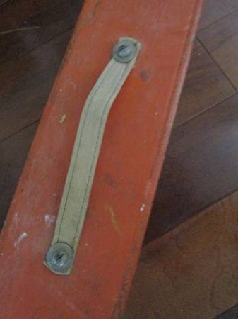 Carrying Handle and Strap tie are both made from canvas. Strap tie has wear.