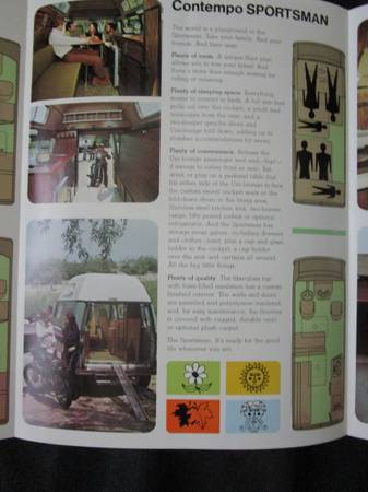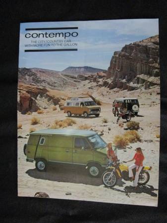 Very nice and rare early 1970s Contempo Campers Inc. Catalog for Chevrolet, Ford, GMC, Dodge and Plymouth vans. Excellent condition!