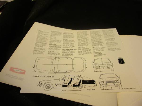 JENSEN "Interceptor III / SP" - 6.2 & 7.2 V8 - 10/1971 - British Sales Brochure Complete and in Excellent Condition