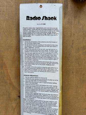 Vintage Car, Truck, Pickup Vehicle CB Antenna from Radio Shack "New" in their original packaging! Magnetic Mount CB Antenna Radio Shack: Cat No. 21-989 / $30.00