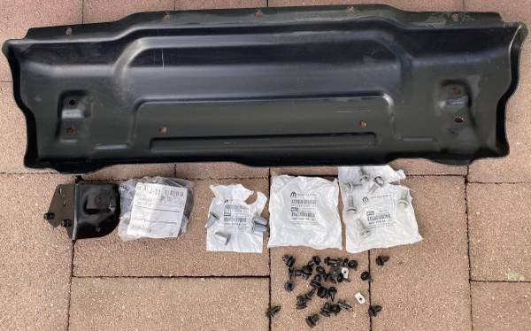 2025 Jeep Wrangler Bumpers, Rubicon steel skidplate and mounting hardware, stock plastic bumpers with front skidplate and sheetmetal backer $100each obo. Steel Rubicon skidplate $120obo Rubicon...