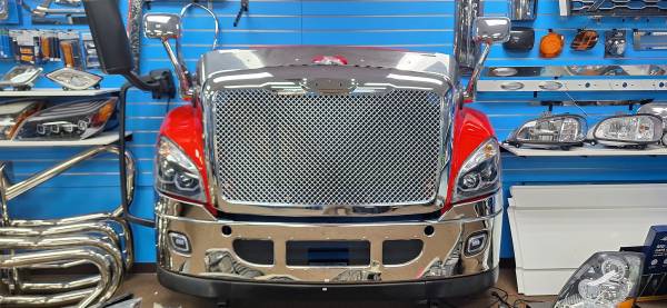 Emblem mounting pocket and holes for original Freightliner grille emblem.