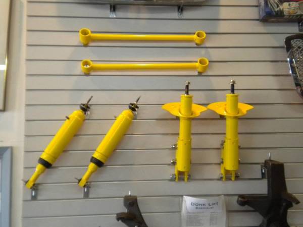 They are new in box, 2" lift, front coil spring kit, These fit Full size, rear wheel drive G.M. B-Bodys 70's-90's. Largest GM R.W.D. cars only. Custom Made by Donklift. No need need for washers, spacers, cups. Do it right the first time! New in box. We have few sets left. Retail $349+ Also available extended brake lines and shocks. Give us a call . Thanks!
