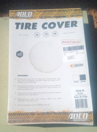 Have three new spare tire covers. The sun can cause damage to your expensive off-road or trailer tires. They can dry out and crack leading to a blowout while on the move. A tire cover can help prevent this from happening. Smith spare tire cover for 14-inch tires, Adco tire cover size N 24-inch fits many sizes see chart, and a Bestop tire cover model 61026-01 X-small fits vehicles like Samuri. $15 each or all three for $30.