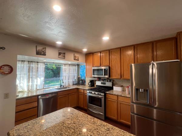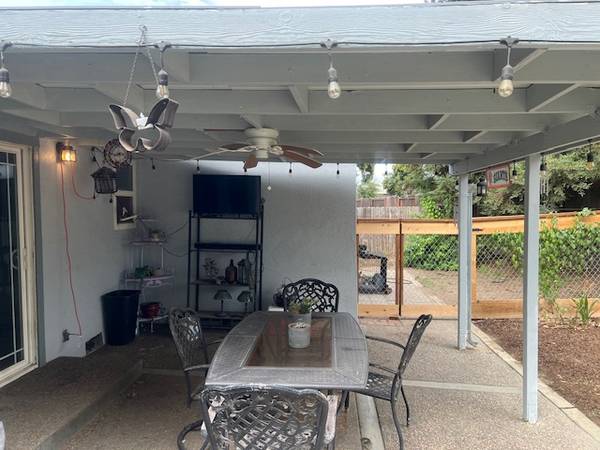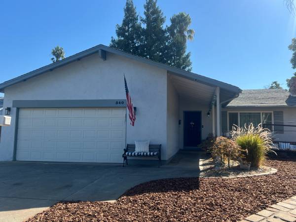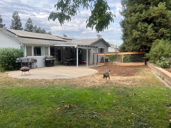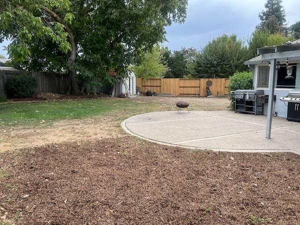 Welcome to this single-story home, ideally situated in the sought-after Almondtree neighborhood. This home boasts a thoughtfully designed floor plan and a huge backyard with plenty of space for a pool, ADU, or both. Enjoy outdoor living with a covered patio, large dog run, garden area, and expansive room to roam. Step inside to find engineered hardwood floors throughout the main living areas. The spacious living room features a cozy wood-burning fireplace and flows into a formal dining area and separate family room perfect for entertaining or everyday living. The updated kitchen offers granite countertops, stainless steel appliances including a newer gas stove, microwave, and refrigerator, plus a convenient peninsula with bar seating. The primary suite includes generous closet space and a fully remodeled en-suite bathroom. Two additional bedrooms feature newer vinyl plank flooring and share an updated hall bath. Exterior painted within the last year This home also includes a two-car garage with ample storage, RV parking, a newer HVAC system, tankless water heater, whole house fan and dual-pane vinyl windows. Recent PGE upgrades include highly efficient attic insulation. Conveniently located near schools, parks & shopping.