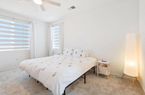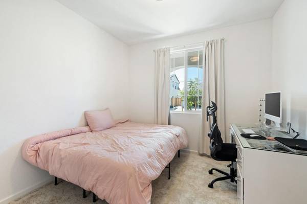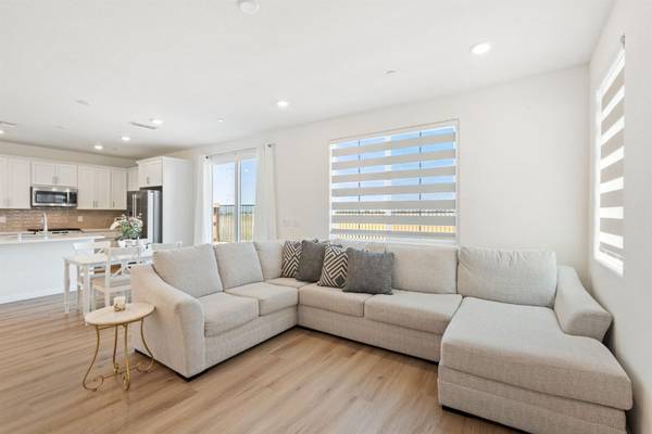 Step into modern living in this beautifully designed home located in a newly built gated community. Completed this year, the residence offers a thoughtful layout with a convenient downstairs bedroom and full bath, ideal for guests or multi-generational living. The open-concept living room seamlessly connects to the kitchen and butler's pantry, creating a perfect flow for entertaining. Natural light fills the main level, highlighting the fresh finishes and inviting spaces. Upstairs, the primary suite features two walk-in closets and a well-appointed bathroom with a linen closet for extra storage. An additional nook upstairs provides flexibility for a home office, study, or reading space. The backyard is finished with clean cement design and opens to serene views of the natural open space, offering both privacy and relaxation. With leased solar for energy efficiency and a wonderful upstairs layout, this home blends comfort, style, and practicality in one exceptional package.